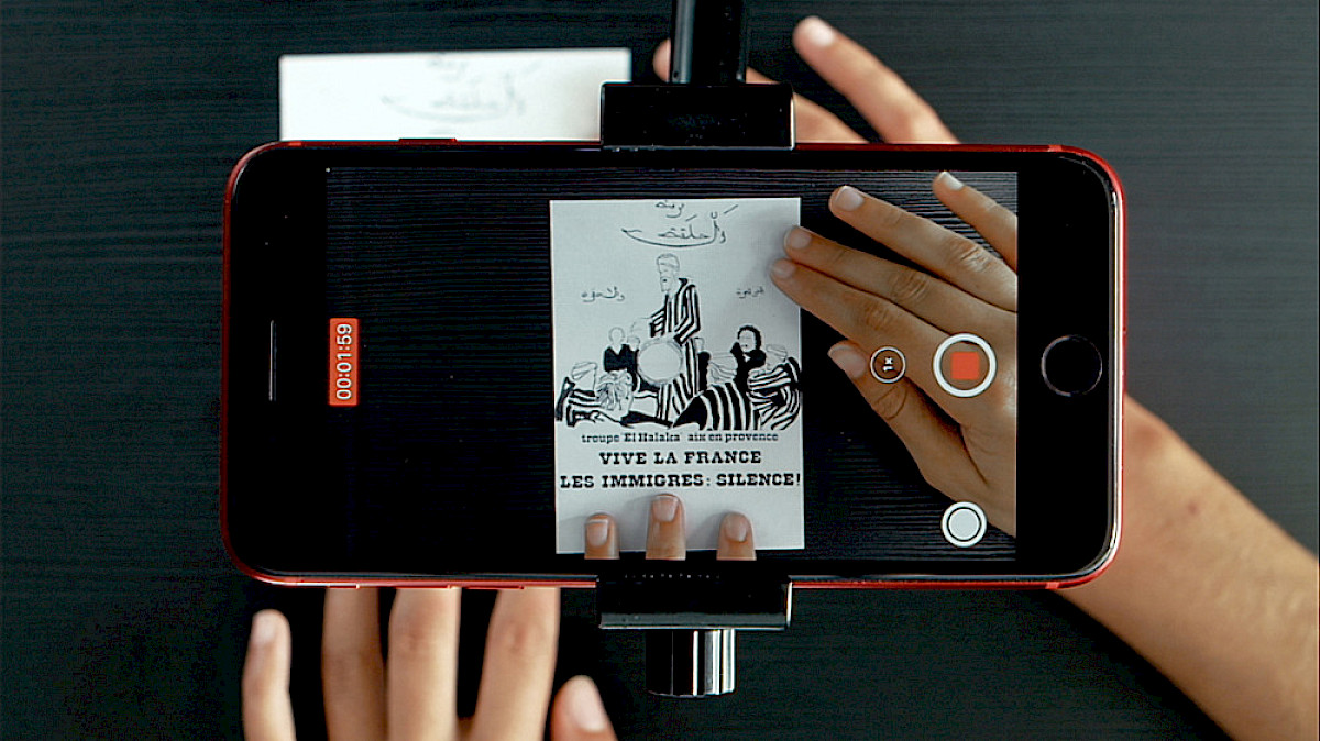 The Circle and The Public Storyteller are directly tied to Bouchra Khalili’s previous work, as they conclude her comprehensive research initiated in 2012 on the restitution of the silenced legacy of the Movement of Arab Workers (MTA) and its theatre groups Al Assifa (The Storm) and Al Halaka (The Circle), in France. In Kunstenfestivaldesarts 2020 Khalili already presented An Audio Family Album, a sound work that links itself with the ways in which Al Assifa created conditions for stories and information to circulate in diasporic circles, forming a living online family album (1) of voices and acoustically repairing memories of a shared struggle for equality.